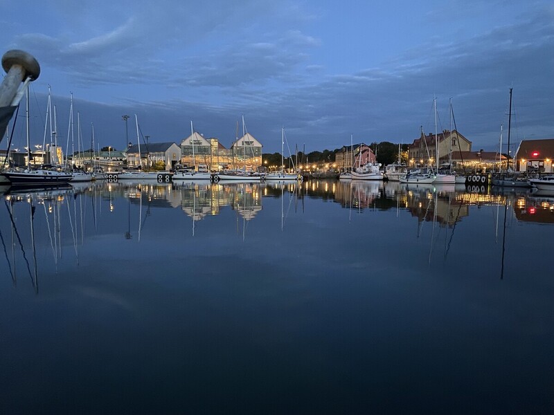 Am 11. August 2025 verließen wir Göteborg in Richtung Süden. Wir motorten für ca. 1,5 Stunden aus dem Trollhättan Kanal und durchqueren die schwedischen Westschären. Hier kamen wir unter Segel mit kleiner Welle 20 sm gen Süden. Wir liefen gegen 15:00 Uhr im Hafen von Sandöhamn ein und konnten an der Mole festmachen. In der Hafenzufahrt konnten wir den Fahrweg nicht eindeutig erkennen, außerdem sorgte der Blick auf den Tiefenmesser (0,9 m) für einen Schrecksekunde. Zum Glück handelte es sich nur um Seegras. Auch die Nacht trug nicht zur Entspannung bei, da der Wind am Abend drehte und wir einen gehörigen Schwell im Hafen hatten. Uns hielt hier also nichts und so ging es weiter nach Süden, woher der Wind kam.
